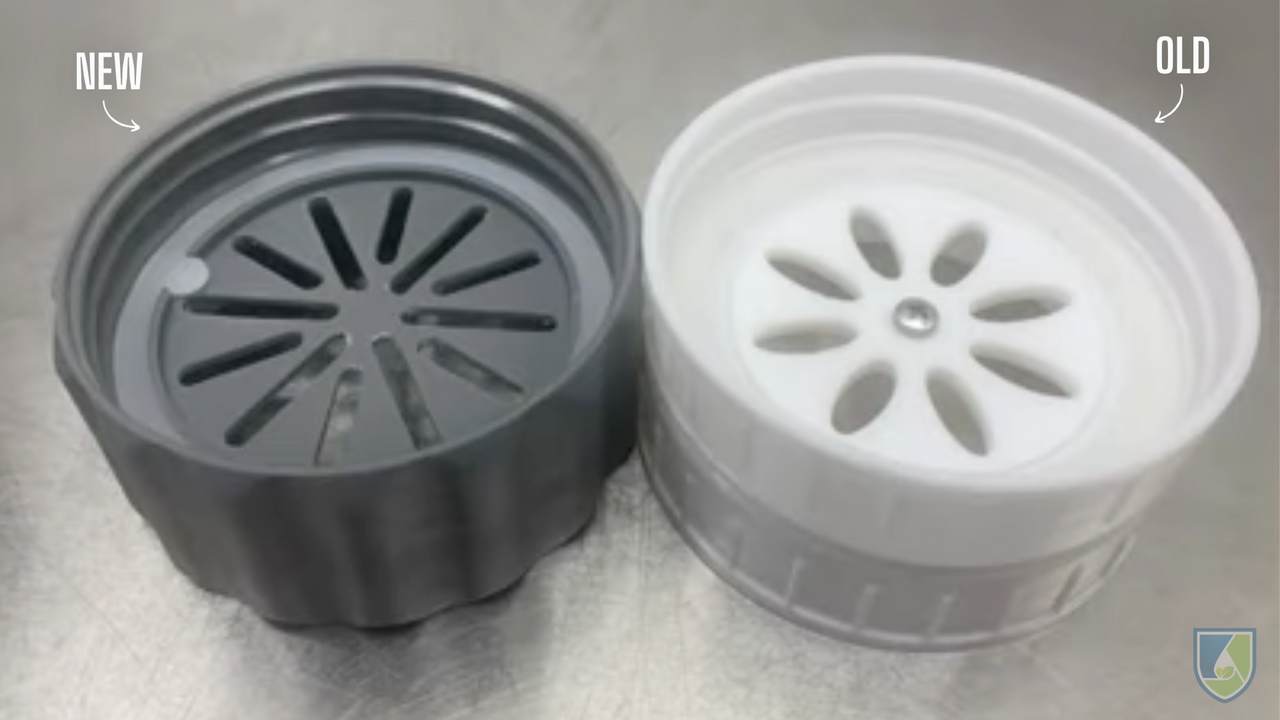- This physical shape on the new one allows greatly improved placement and replacement of the vent filters. The old one took a certain amount of skill and two little drops of UV glue at the grooves in the center to fully assure no leaks. That is eliminated now. Now, anyone can easily change the filter without concern for tiny leaks.