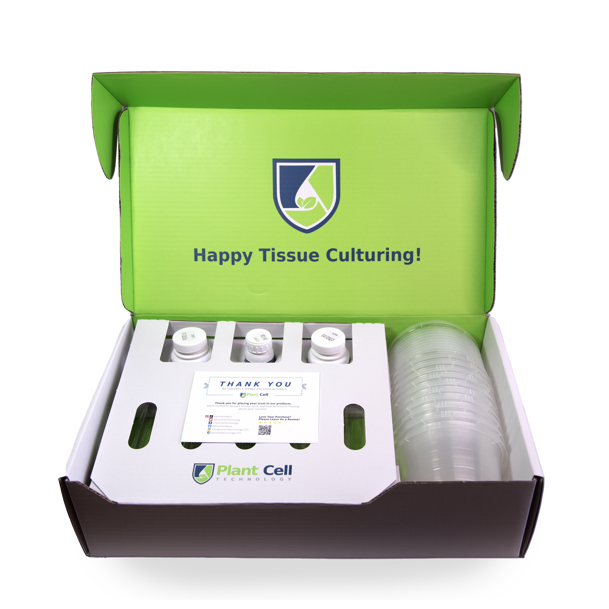 Bring your plant tissue culture projects to life with Plant Cell Technology’s most complete starter kit yet, packed with the essential ingredients, tools, and culture vessels you need to introduce plants into tissue culture at home or in a small lab. Whether you’re starting your very first culture or streamlining your existing setup, the Starter Kit 2.0 gives you everything you need in one convenient package, no more searching for individual components.
