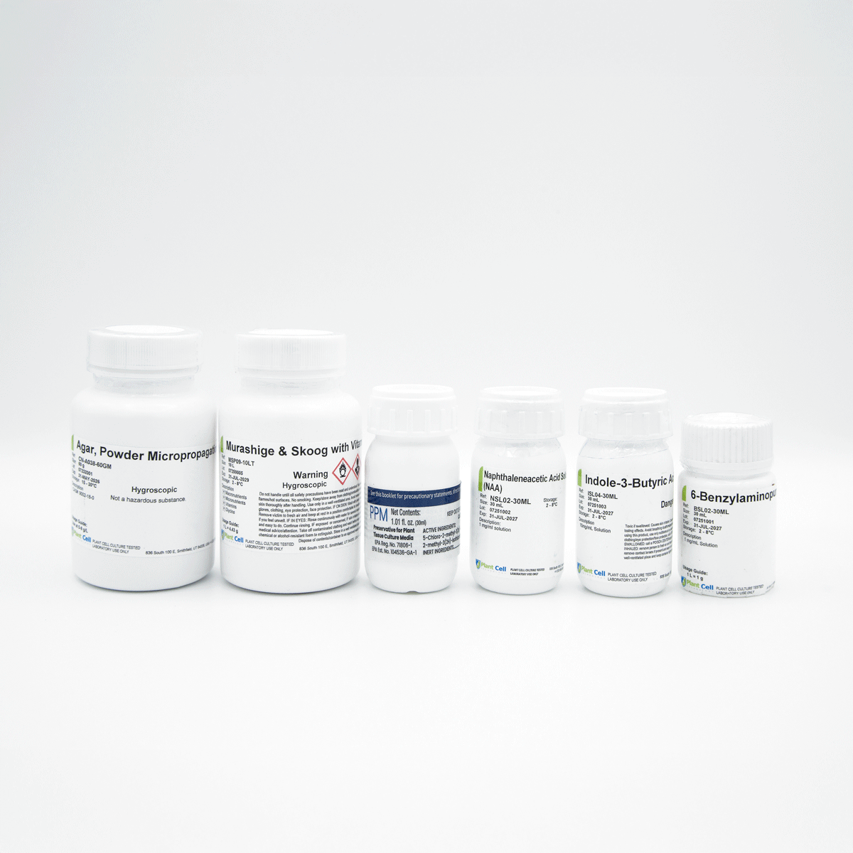 - NAA (30 mL) – A synthetic auxin commonly used to stimulate root formation and regulate callus development in tissue culture. NAA also aids in somatic embryogenesis and is often used in combination with cytokinins for optimal plant growth.